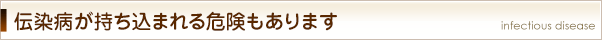 また懸念は他にもありまして、人が運ぶ感染症も多くあるでしょう。ウイルスや細菌のほか、外部寄生虫や一般的な昆虫や虫もまた持ち込まれる可能性があります。